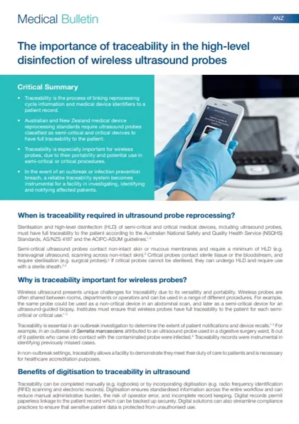 • Australian and New Zealand medical device reprocessing standards require ultrasound probes classified as semi-critical and critical devices to have full traceability to the patient.